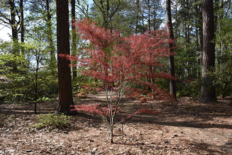 Hubbs Red Willow is a vigorous-growing, red Linearilobum Japanese maple. It has narrow red leaves that give the appearance of bamboo. In summer, the leaves deepen in red color, turning bright red in the fall.