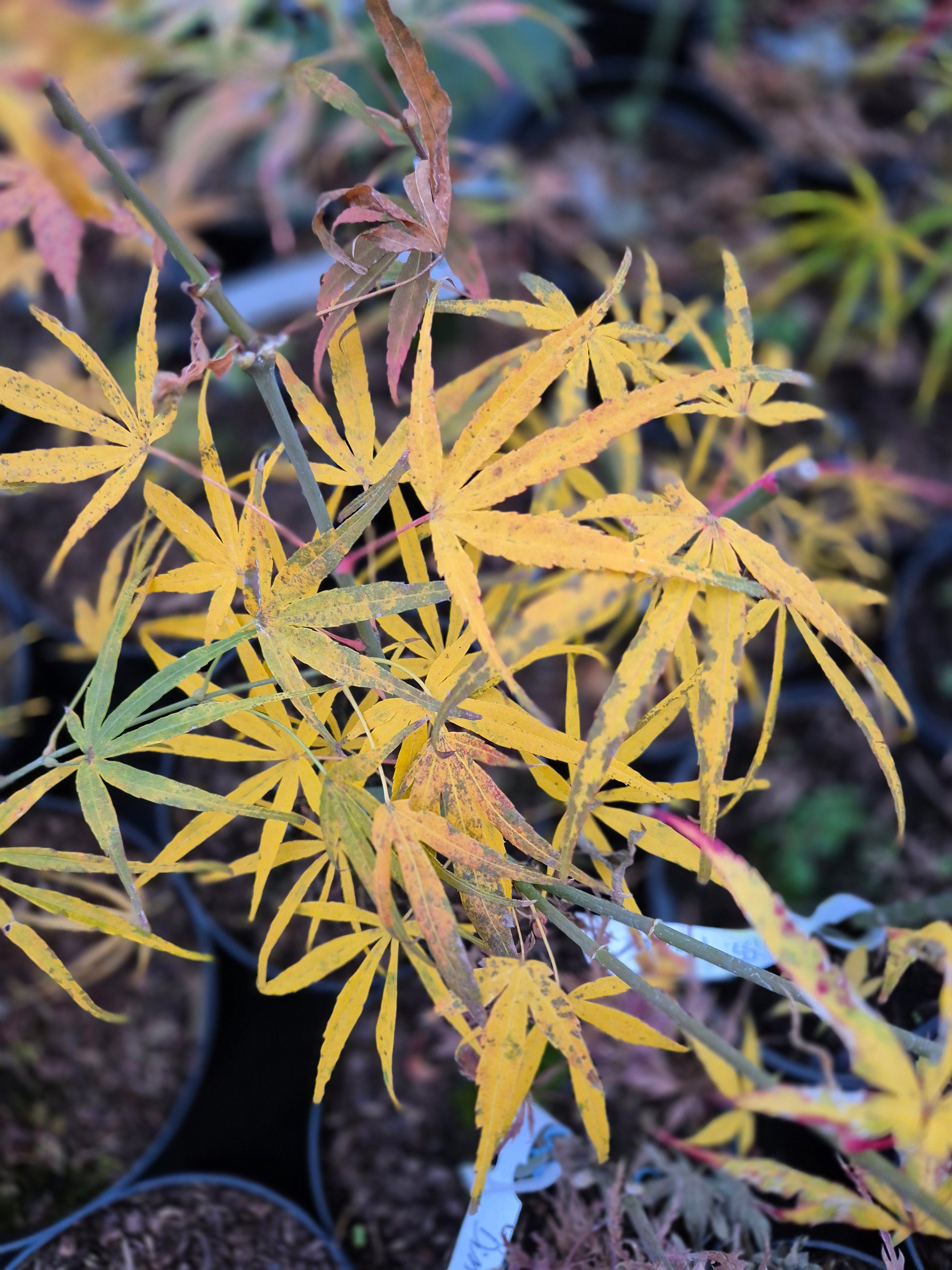 Linearilobum has light green, bamboo-like foliage. Stunning, bright yellow colours appear in the autumn.